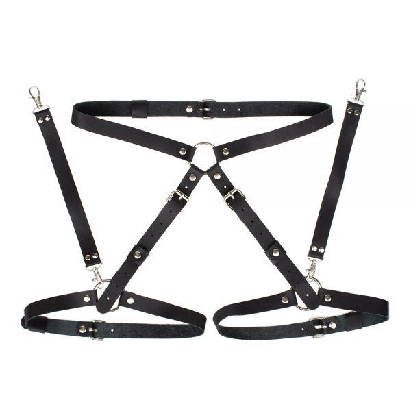 Здатний зробити будь-яку дівчину вишуканою і привабливою. Можна надягати на штани, легінси, колготки під спідницю або плаття. Або використовувати як стильний інтимний аксесуар БДСМ-тематики. Є ремінці з карабінами для наручників. Обхват стегон і довжина регулюється.;